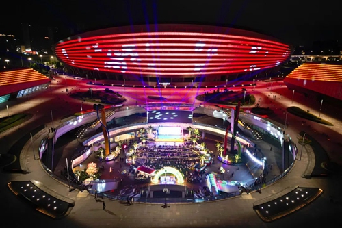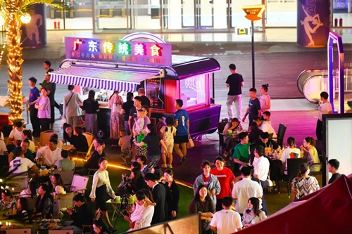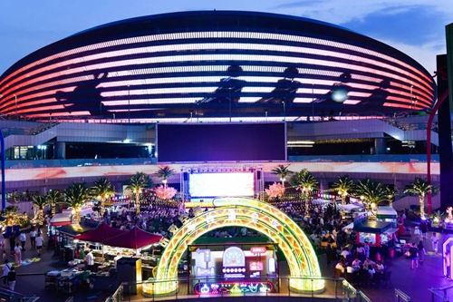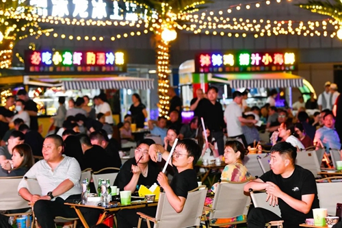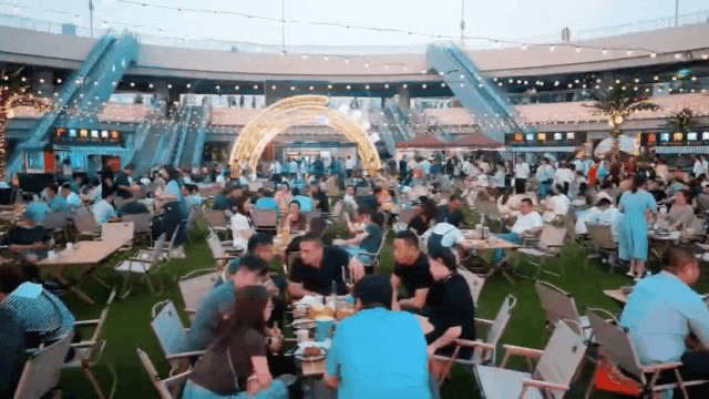 熠熠星光耀向夜空,呼應著霓虹閃爍的奧體中心,飄散的煙火氣和美食的香氣充斥著整個下沉空間,舞臺音樂節(jié)奏歡快、火爆酷炫,在霓虹交錯的空間里,一天的時間仿佛被夜市拉長,這是年輕人帶給這座城市的無限活力。