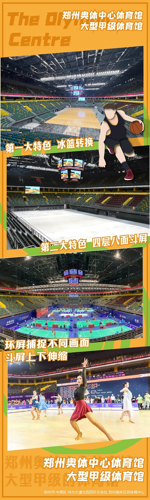 奧體中心體育館作為大型甲級(jí)體育館,空間使用靈活,場(chǎng)地利用率高。目前已經(jīng)舉辦了2019年世界乒聯(lián)巡回賽總決賽、2020年世界乒聯(lián)巡回賽總決賽、2019年全國(guó)羽毛球單項(xiàng)冠軍賽、2021年全國(guó)羽毛球冠軍賽暨第十四屆全運(yùn)會(huì)羽毛球項(xiàng)目資格賽、2022年河南省第一屆職業(yè)技能大賽、2023永慶安瀾德云社岳云鵬·孫越相聲專場(chǎng)等知名賽事活動(dòng)。下半年,將有更多知名演藝、賽事活動(dòng)在奧體中心體育館舉辦。主館西側(cè)為總面積約2100平方米的籃球熱身館,目前已經(jīng)舉辦過(guò)籃球、跆拳道、羽毛球等體育賽事,以及企業(yè)展銷(xiāo)、社區(qū)聯(lián)誼、動(dòng)漫展等活動(dòng);北側(cè)為冰上運(yùn)動(dòng)中心,擁有1800平方米國(guó)際標(biāo)準(zhǔn)冰,致力于為中部地區(qū)提供從啟蒙到精英級(jí)的系統(tǒng)化冰上運(yùn)動(dòng)培訓(xùn)。