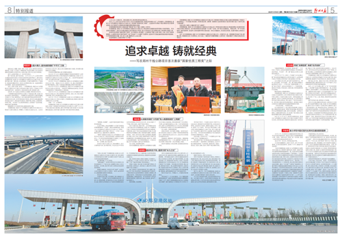當(dāng)日上午,從在北京召開的“2022—2023年度國家優(yōu)質(zhì)工程獎(jiǎng)總結(jié)表彰大會(huì)”上傳來喜訊,京港澳高速、省道102與四港聯(lián)動(dòng)大道組合式互通立交工程榮獲“國家優(yōu)質(zhì)工程獎(jiǎng)”。這是鄭州市國省干線公路項(xiàng)目首次獲得該獎(jiǎng)項(xiàng),標(biāo)志著我市公路建設(shè)高質(zhì)量發(fā)展取得新的突破。
