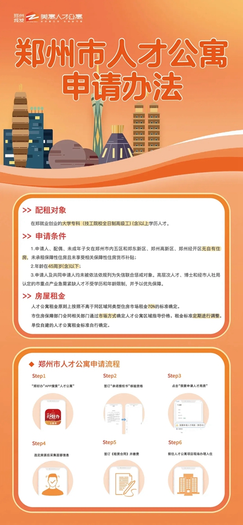 本批次配租全流程通過線上進(jìn)行,按照“一網(wǎng)通辦、一網(wǎng)通管”的原則,申請(qǐng)人可登錄“鄭好辦”APP(“一件事專區(qū)”→“住房保障一件事”),進(jìn)入人才公寓配租模塊,按照提示進(jìn)行申請(qǐng)、選房、簽約和退出。