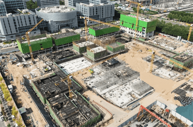 五月的城發(fā)·高新生物經(jīng)濟(jì)產(chǎn)業(yè)園,塔吊繁忙運(yùn)轉(zhuǎn)、機(jī)械設(shè)備轟鳴不斷,工人們有條不紊地進(jìn)行施工作業(yè),項(xiàng)目建設(shè)現(xiàn)場(chǎng)到處一派熱火朝天的繁忙景象。其中,項(xiàng)目一期的主樓工程基本完成,室外配套管網(wǎng)、景觀正在施工中;項(xiàng)目三期的土方、樁基已完成,正在交叉推進(jìn)正負(fù)零和主體施工,部分樓棟已施工至六層。