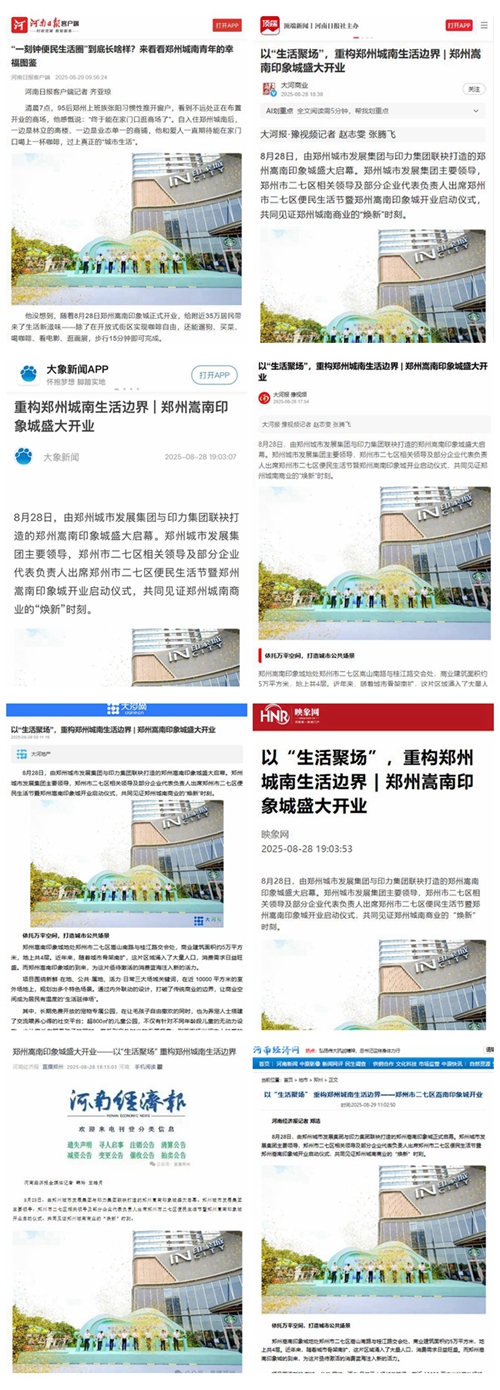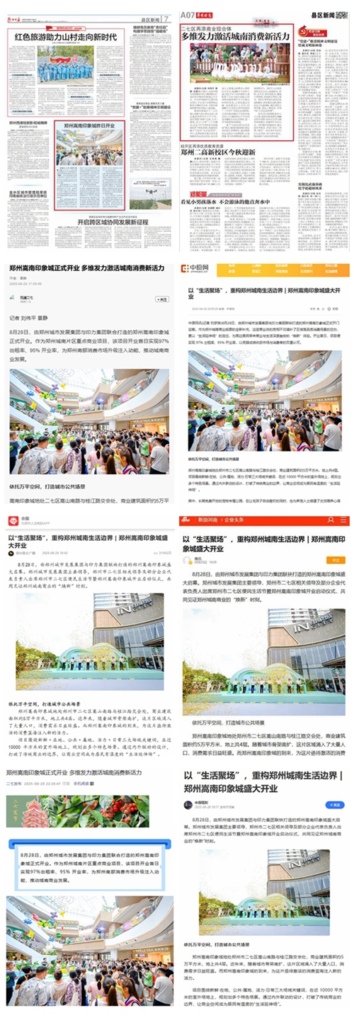 8月28日,鄭州城南商業(yè)格局迎來重大變革,由鄭州城市發(fā)展集團(tuán)與印力集團(tuán)攜手打造的鄭州嵩南印象城盛大啟幕,開業(yè)首日客流達(dá)12.6萬人次,迅速成為全城矚目的焦點(diǎn)。這一盛事引發(fā)了各大媒體的廣泛關(guān)注,河南日報(bào)客戶端、頂端新聞、大象新聞、大河報(bào)、大河網(wǎng)、映象網(wǎng)、河南經(jīng)濟(jì)報(bào)、鄭州日報(bào)、鄭州晚報(bào)、鄭州廣播電視臺等媒體紛紛聚焦,對其開業(yè)進(jìn)行了全方位、多角度的報(bào)道。