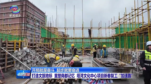 在位于管城區(qū)商城路上的塔灣文化中心項目施工現(xiàn)場,塔吊林立、機械轟鳴,建設者們正緊張有序地進行主體結構施工和配套設施建設。鏡頭中,往來穿梭于施工現(xiàn)場的張希旺是項目的生產(chǎn)經(jīng)理,正月初六他便和他的團隊回到了項目,共同開啟新一年的奮斗。