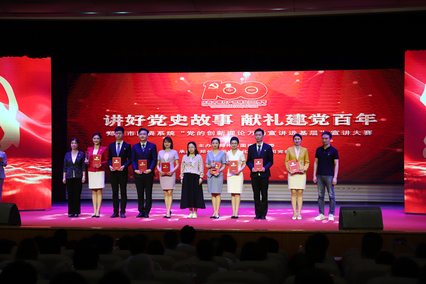 為慶祝中國(guó)共產(chǎn)黨成立100周年, 扎實(shí)開(kāi)展黨史學(xué)習(xí)教育, 5月26日上午,鄭州市國(guó)資系統(tǒng)“講好黨史故事·獻(xiàn)禮建黨百年”——“黨的創(chuàng)新理論萬(wàn)場(chǎng)宣講進(jìn)基層”宣講大賽在市總工會(huì)一樓職工大禮堂圓滿(mǎn)落下帷幕。來(lái)自市國(guó)資系統(tǒng)14家單位選送的15個(gè)宣講節(jié)目進(jìn)入大賽決賽,鄭州地產(chǎn)集團(tuán)選送的西流湖公司黨支部宣講節(jié)目《百年交響》榮獲三等獎(jiǎng)。