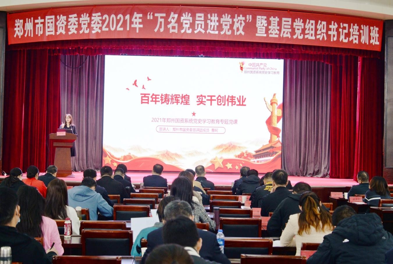 10月19日,鄭州市國資委黨委舉行2021年“萬名黨員進(jìn)黨校”暨基層黨組織書記培訓(xùn)活動(dòng),鄭州地產(chǎn)集團(tuán)西流湖公司黨支部曹珂同志作為市國資委宣講團(tuán)成員,向市國資委黨委市管企業(yè)優(yōu)秀黨支部書記、優(yōu)秀共產(chǎn)黨員130余人進(jìn)行了以《百年鑄輝煌 實(shí)干創(chuàng)偉業(yè)》為主題的黨課宣講。